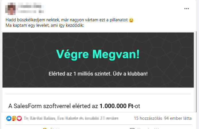 "Képzeld Balázs, betartottam a legtöbb tippedet, elkészült az előfizetésem és máris csatlakozott 87 előfizető a klubhoz (basszus ez havi 870 000 Ft fixen)- De ez még nem minden... így sokkal többen jönnek a 1,5 milliós mentor programomra. Egyszerűen nem hiszek a szememnek! EKM-et mindenkinek!"